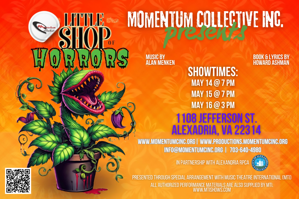 For our 6th youth theater production, we present Little Shop of Horrors on May 14-16 at the Lee Center in Alexandria, VA. Featuring a cast of 50 youth from across the city, the audience will be treated to such familiar musical numbers as “Suddenly Seymore”, “Skid Row (Downtown)” and “Don’t Feed The Plans”. The production team includes the familiar faces of director, Jason Ellis, and choreographer, Rosslyn Burrs.